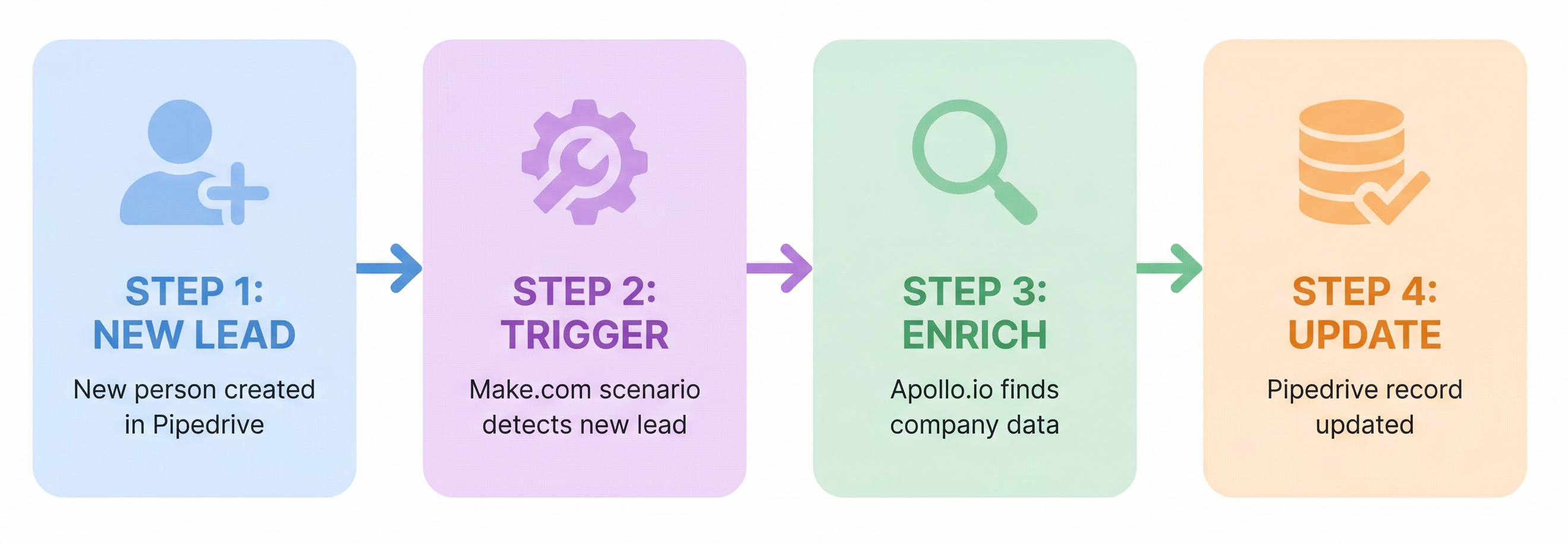 Once leads enter the Inbox, you can speed up follow-up and reduce the amount of manual work. With Pipedrive you can create automations for assignment, first replies and follow-up tasks - helping each lead move forward without constant oversight. We also recommend using Make.com or Zapier to create more advanced follow up flows (e.g. integration with third party tools such as Active Campaign for lead nurturing campaigns and advanced lead scoring for example).